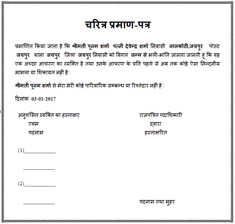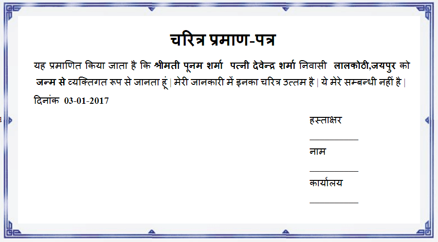 | चरित्र प्रमाण-पत्र | ||||||||||